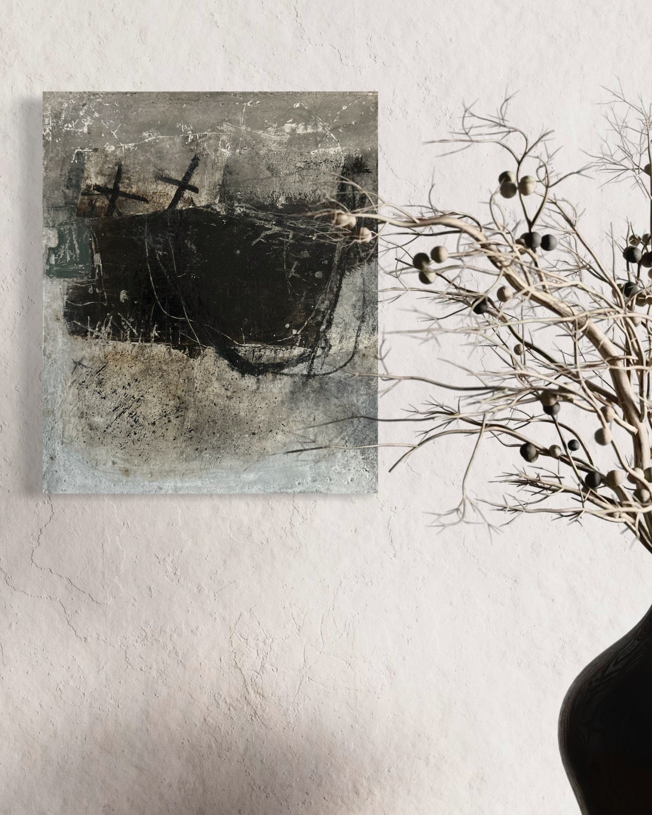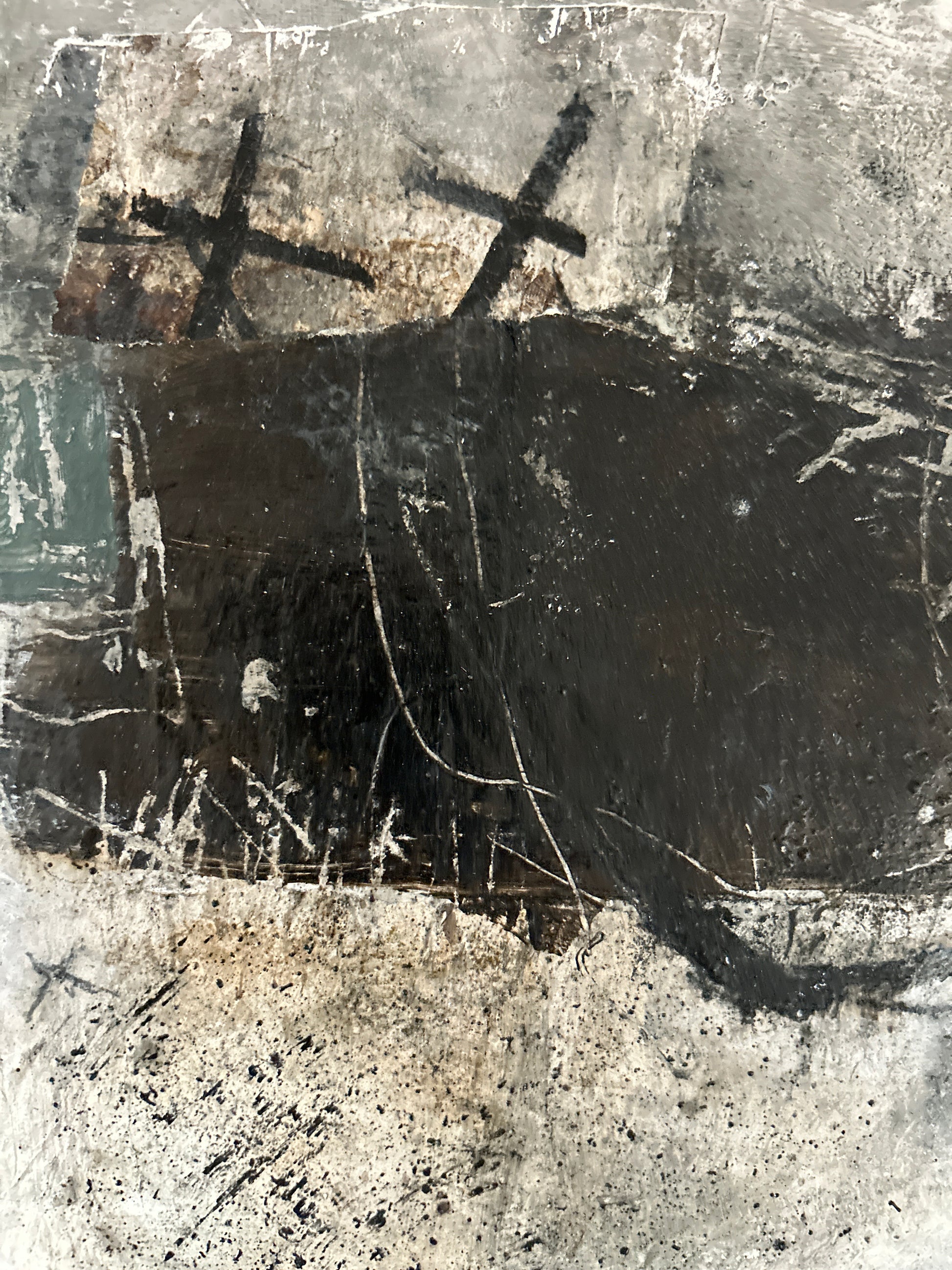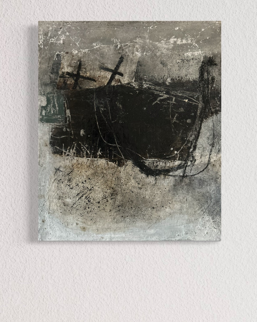 Original collage painting on wood, using acrylic paint, collage